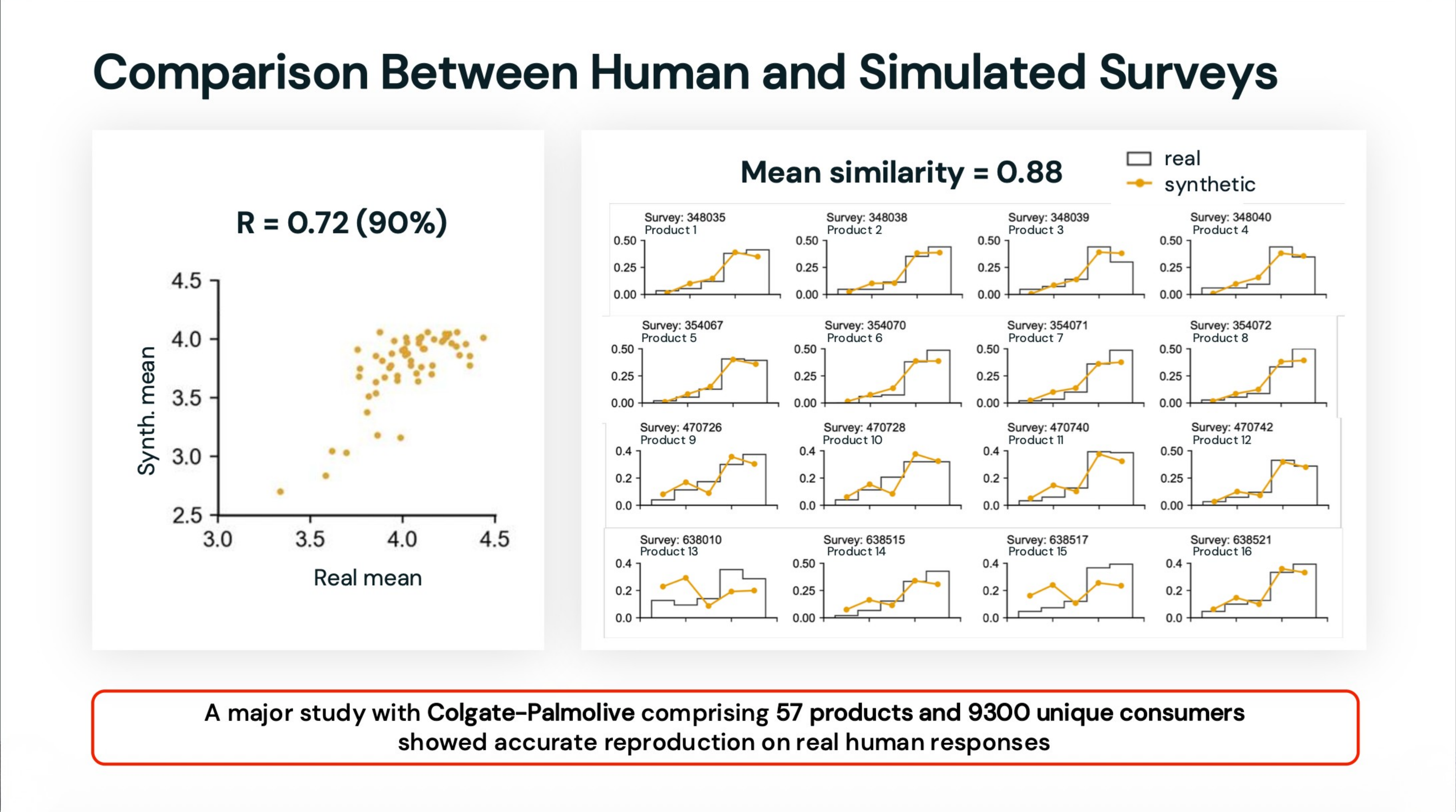 Comparison between human and simulated surveys from the Colgate-Palmolive study